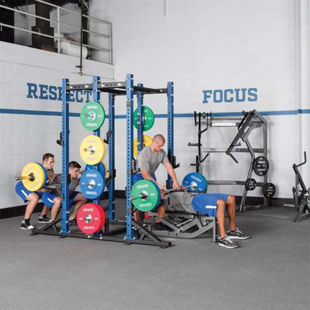 Maximise training space with a single rack configuration that offers two performance strength stations and ample weight plate storage space. Combine with other racks and accessories to create a workout area to fit your athletes.