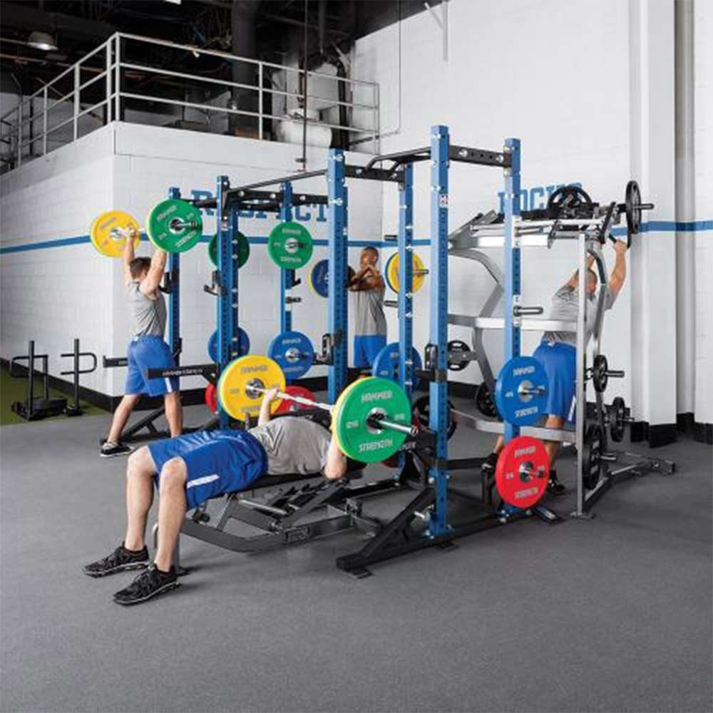 Maximum versatility with minimum holes in the frame for a clean and attractive look. Four high-wear colours for uprights and cross member options, and standard Hammer Strength colour choices for the frames.