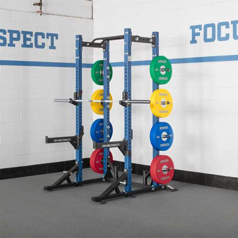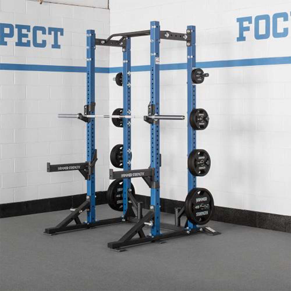 Maximum versatility with minimum holes in the frame for a clean and attractive look. Four high-wear colours for uprights and cross member options, and standard Hammer Strength colour choices for the frames.