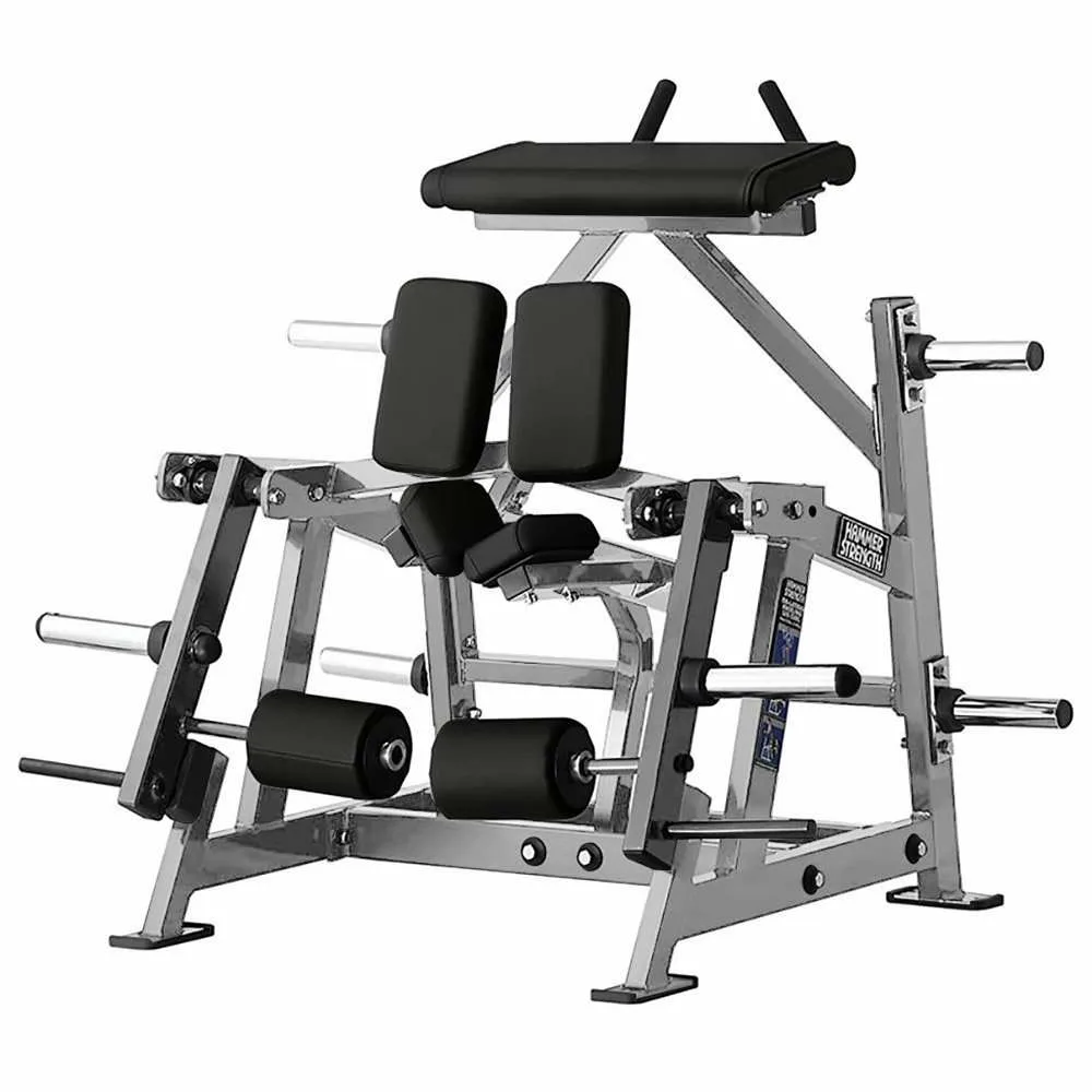 The Plate-Loaded Iso-Lateral Kneeling Leg Curl was blueprinted from human movement. Separate weight horns engage independent diverging and converging motions for equal strength development and muscle stimulation variety. It uses a kneeling position with a divergent angle between the hip and chest pads to help reduce lower-back tension.