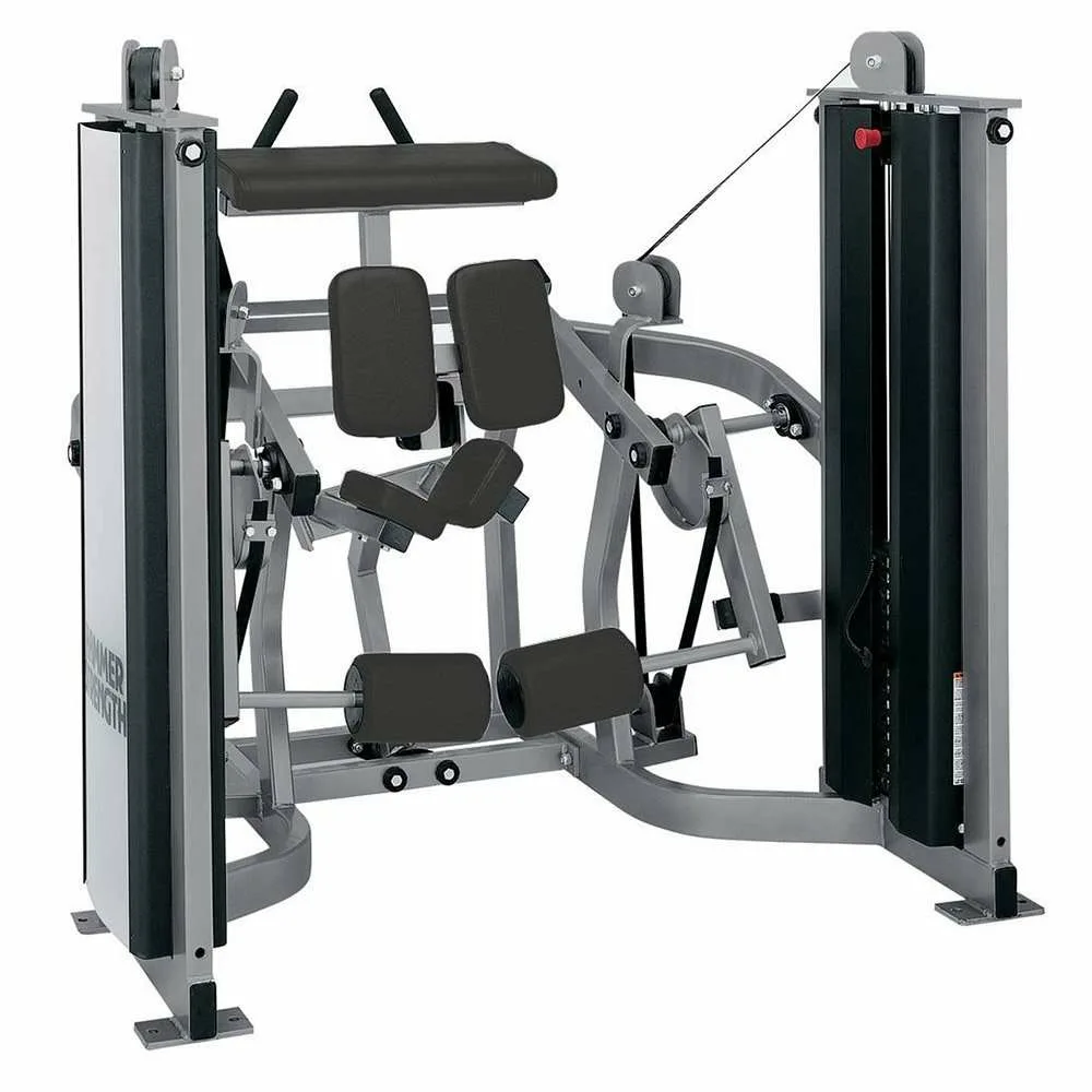 The Hammer Strength MTS Iso-Lateral Kneeling Leg Curl features separate weight stacks that provide independent diverging and converging motions. The exercise arms are counterbalanced to reduce starting resistance for exercisers, and handgrips pivot away for easy entry and exit.