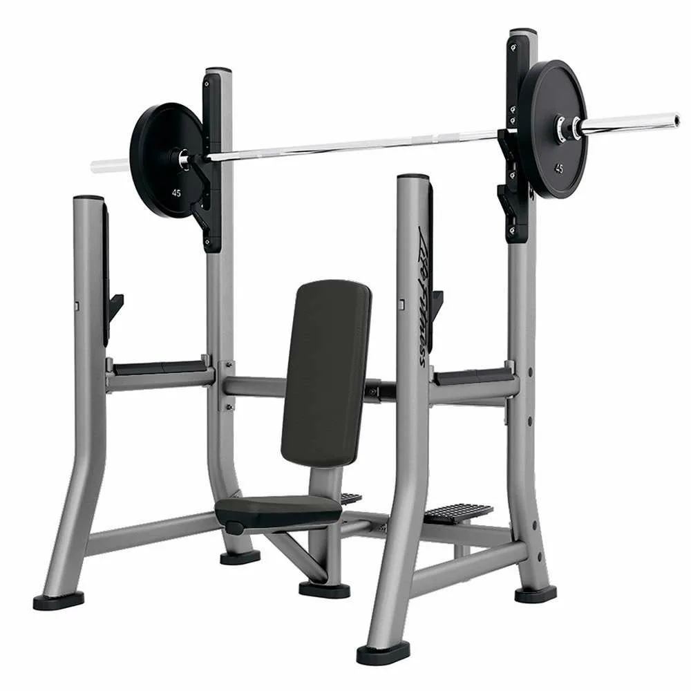 The Hammer Strength Olympic Military Bench features moulded urethane protective racking that limits noise and protects the bar from wear for a stable and precise workout. It has a forward and rear racking system for added variety.