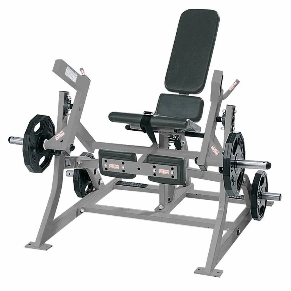 The Plate-Loaded Leg Extension was blueprinted from human movement. Separate weight horns engage independent diverging and converging motions for equal strength development and muscle stimulation variety. Two resistance loading positions provide dual strength curves depending on exercise goals.