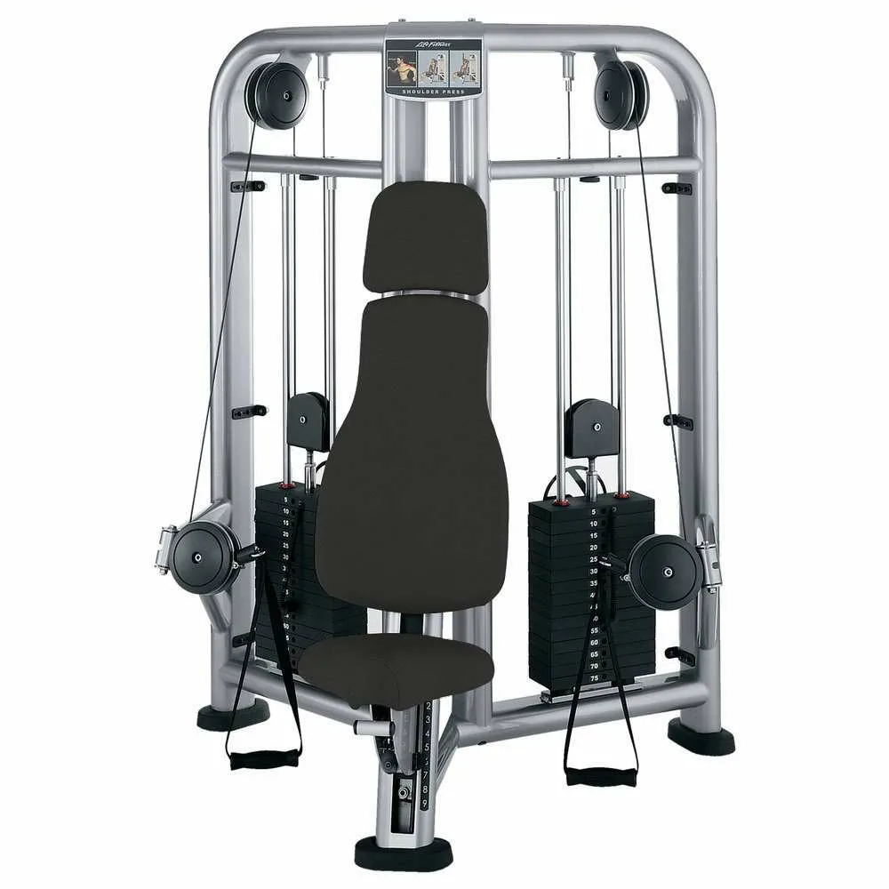 The Life Fitness Signature Cable Motion Shoulder Press has 1:2 resistance weight stacks. Each arm has a dedicated weight stack for greater variety. The user-defined path of motion allows for effective shoulder exercises.